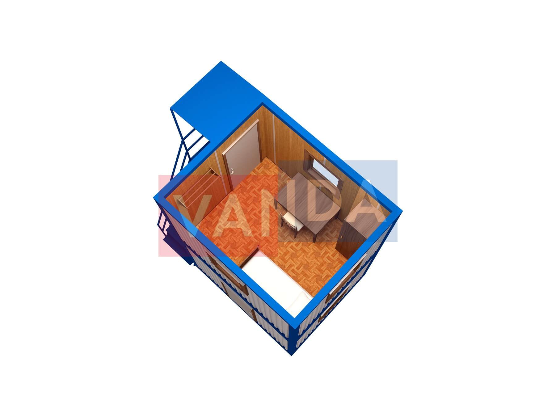 Металлическая бытовка без тамбура 5,85 x 2,4 - Оргалит ДВП