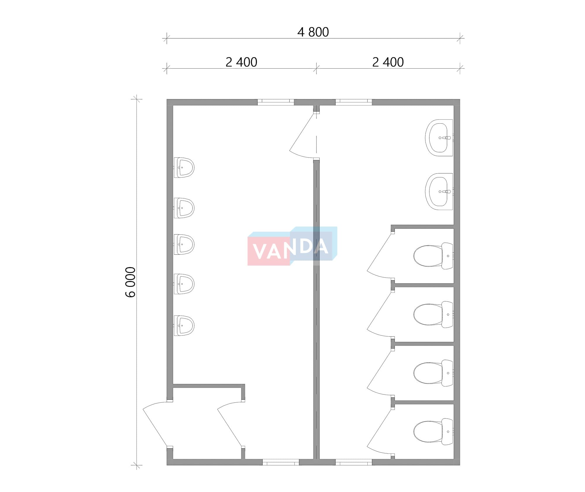 Модульная бытовка с плоской крышей 4.8х6.0 4.8х6.0 28.8 OSB 9 мм. Оцинкованный профлист 500 000 р. Уточняйте у менеджера