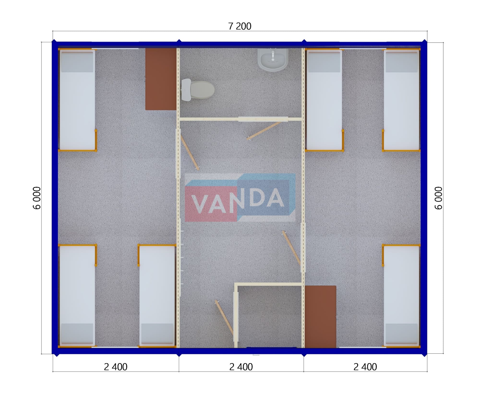 Модульная бытовка с плоской крышей 7.2x6.0 7.2x6.0 43.2 OSB 9 мм. Оцинкованный профлист 650 000 р. Уточняйте у менеджера