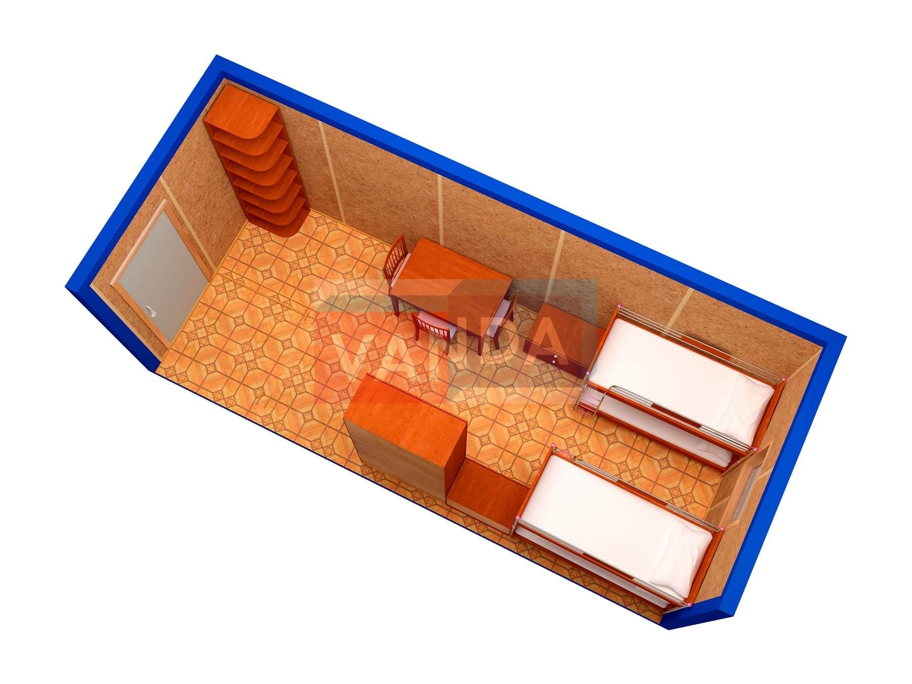Строительная бытовка со сборкой на месте №4 (вариант 3) 5.8x2.2 12.76 Вагонка деревянная Имитация бруса 140 500 р. Уточняйте у менеджера